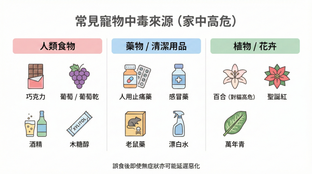 家中看似普通的零食與花卉,對狗狗與貓咪可能是致命毒物。了解常見中毒來源與急救原則,有助減少悲劇發生。
