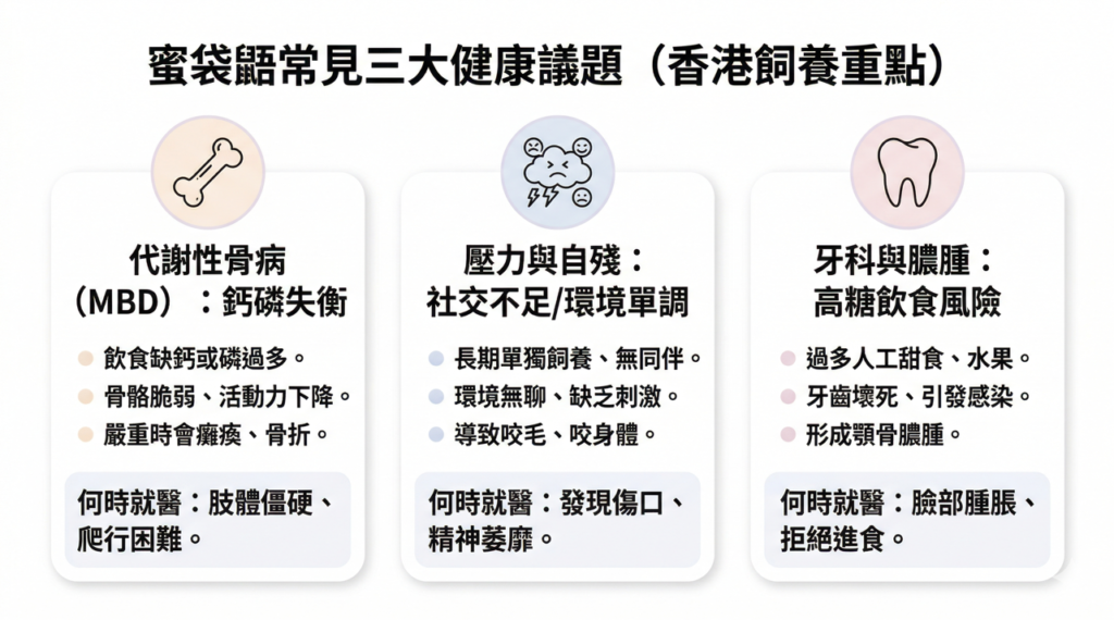 蜜袋鼯原生於澳洲、印尼等森林地帶,是夜行性、群居的有袋類。在香港緊湊的居住環境中,飼主常面臨空間限制、室內人工光照時間過長以及飲食獲取不便等問題。這些因素若處理不當,會直接反映在蜜袋鼯的免疫系統上。