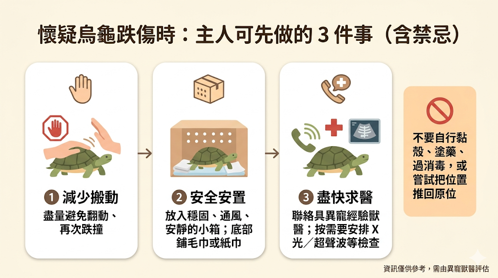懷疑烏龜跌傷時,主人可以先做甚麼?