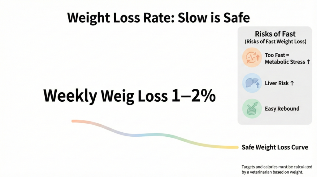 - Generally recommended to reduce body weight by about 1–2% per week; losing weight too fast affects metabolism and liver health.